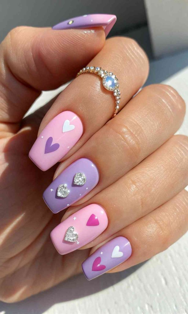 Another version of these nails focuses on elegance mixed with edge. Think rose‑gold tones blending into lilac chrome, catching the light just right. These nails aren’t overcomplicated—they stand out because of their shape and finish rather than too many designs. It’s the kind of manicure that whispers power instead of shouting it.