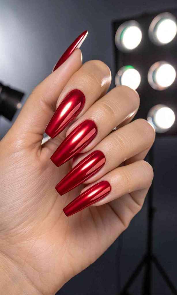 Wearing long baddie nails feels like wearing fashion art. Whether they’re red, chrome, or crystal‑studded, they express confidence and bold energy. Each nail becomes part of a larger statement: power with polish.