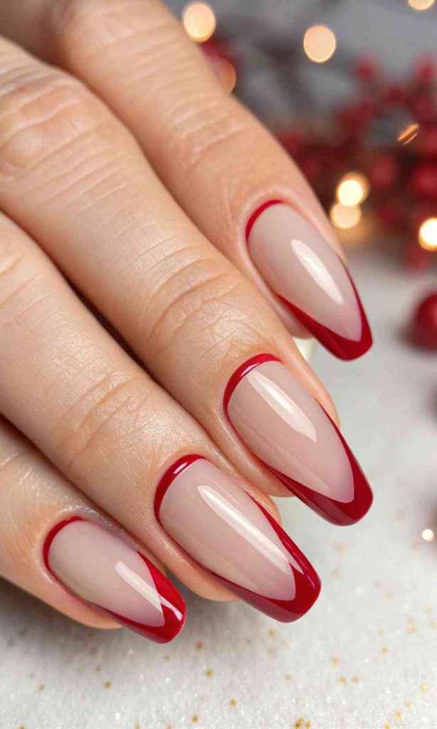 Ballerina nails with red tips look classy and a little sassy at the same time. It’s a great choice when you want color without going full red on every nail.