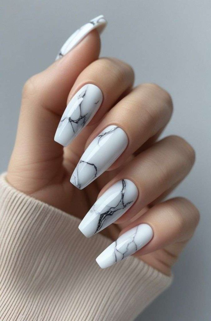 Marble nails look like tiny pieces of stone, with soft lines and a natural flow. No two nails look the same, which makes the design feel special.