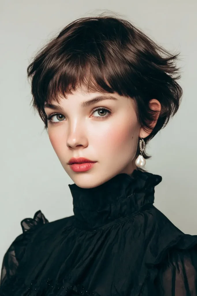 This style is easy to maintain and works well if you like clean shapes. It feels soft and feminine while still keeping the fun bixie look.