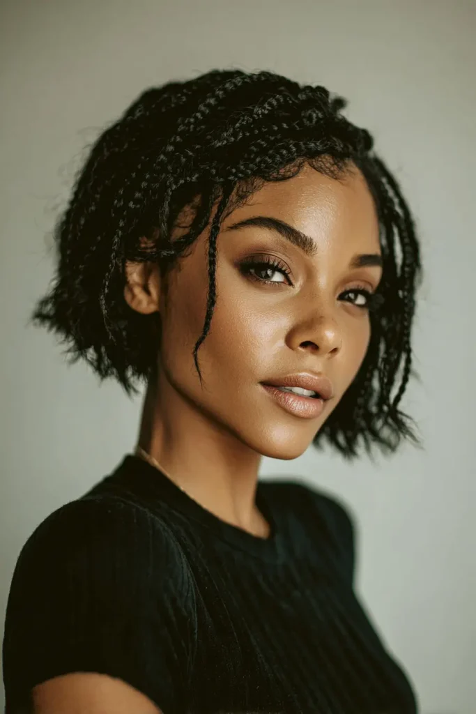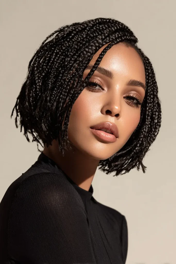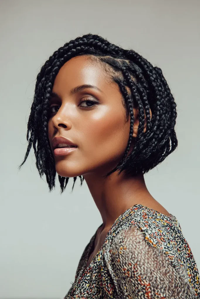 This style is perfect for someone who enjoys fine detail and flexibility. Braided bob hairstyles with micro braids can be styled in many ways and still keep a soft bob shape.