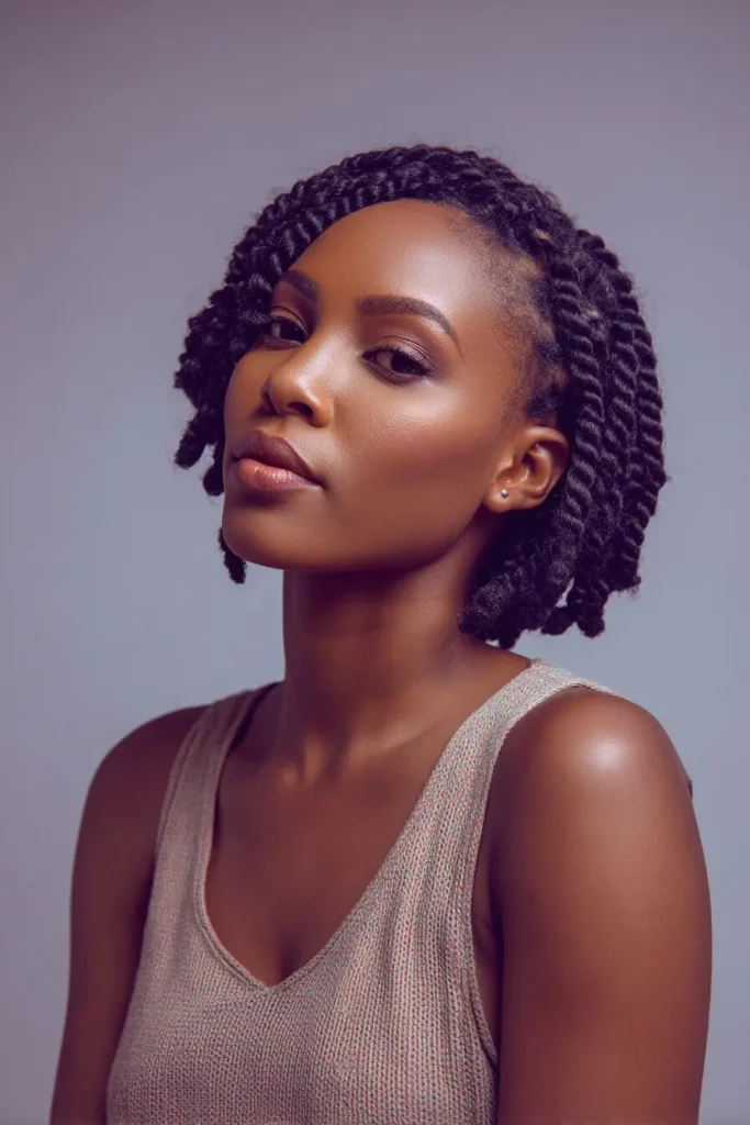 Bob-length twist braids are soft, pretty, and easy to wear. Twists usually give a more natural and relaxed look compared to traditional braids.