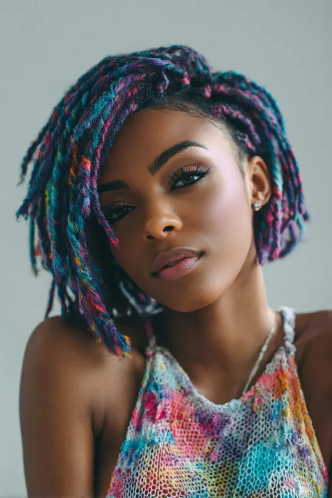 A colored braided bob brings extra life and beauty to the hair. Shades like blonde, brown, burgundy, or ombré can make the style feel fresh and creative.