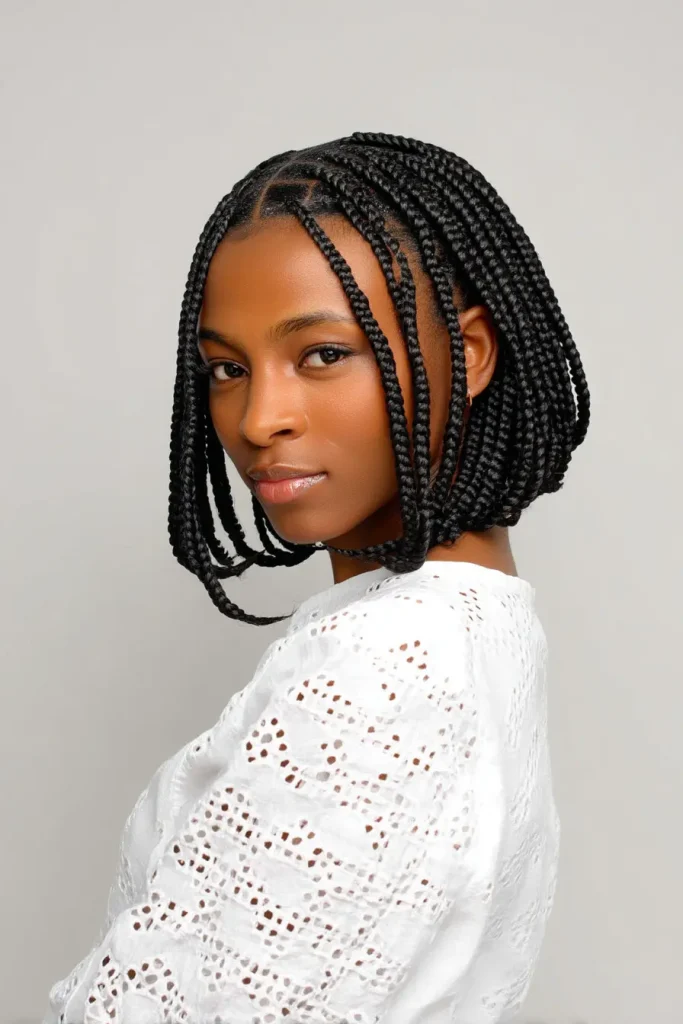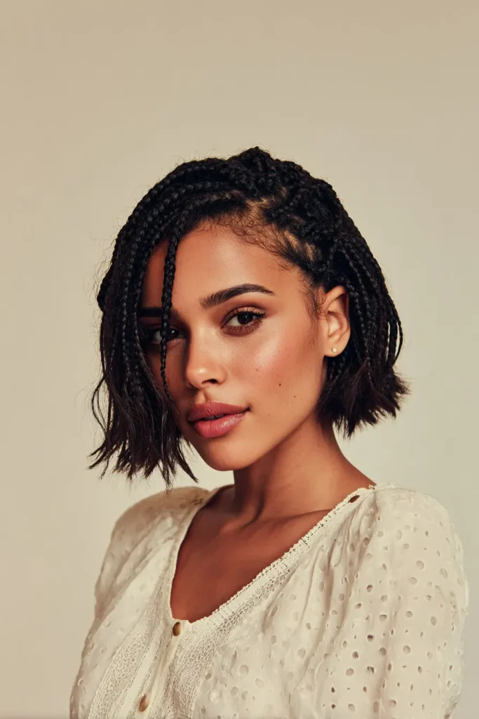 This style is a good pick if you want beauty without too much tension. Braided bob hairstyles in knotless form are neat, modern, and gentle on natural hair.