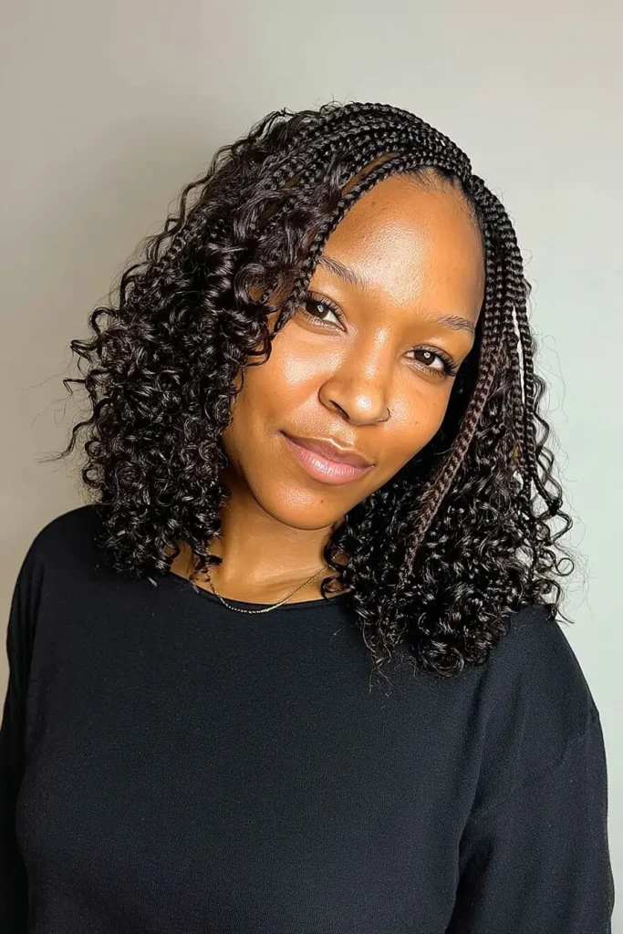 The curly-end braided bob mixes braids with soft curls at the ends. This style feels playful and light, and it adds movement that makes the bob look more lively.