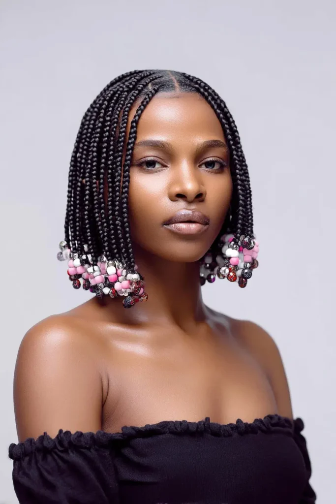 A braided bob with beads is fun, stylish, and full of personality. The beads can be simple or bold, depending on the look you want to create.