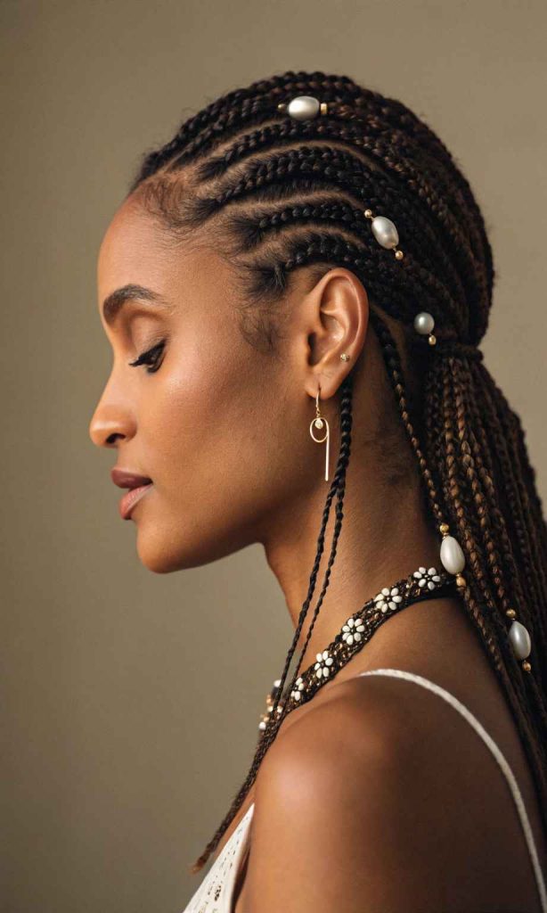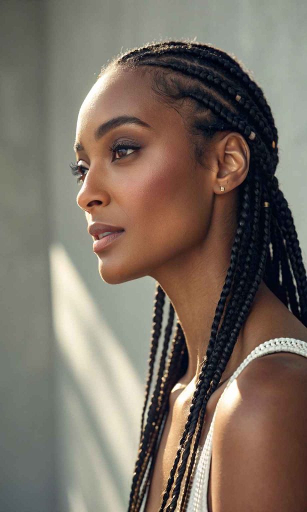 Cornrow braids with beads bring life and personality to the traditional braided look. Adding beads at the ends of the braids gives a playful yet stylish vibe that reflects culture and individuality. This form of cornrow hairstyles is perfect for anyone wanting to add sparkle, rhythm, or a personal touch to their hair.