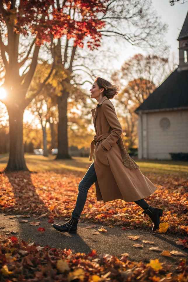 A trench coat with ankle boots is a fall staple that feels timeless. The coat gives structure and elegance while the boots add a trendy edge. This combination is always reliable.
