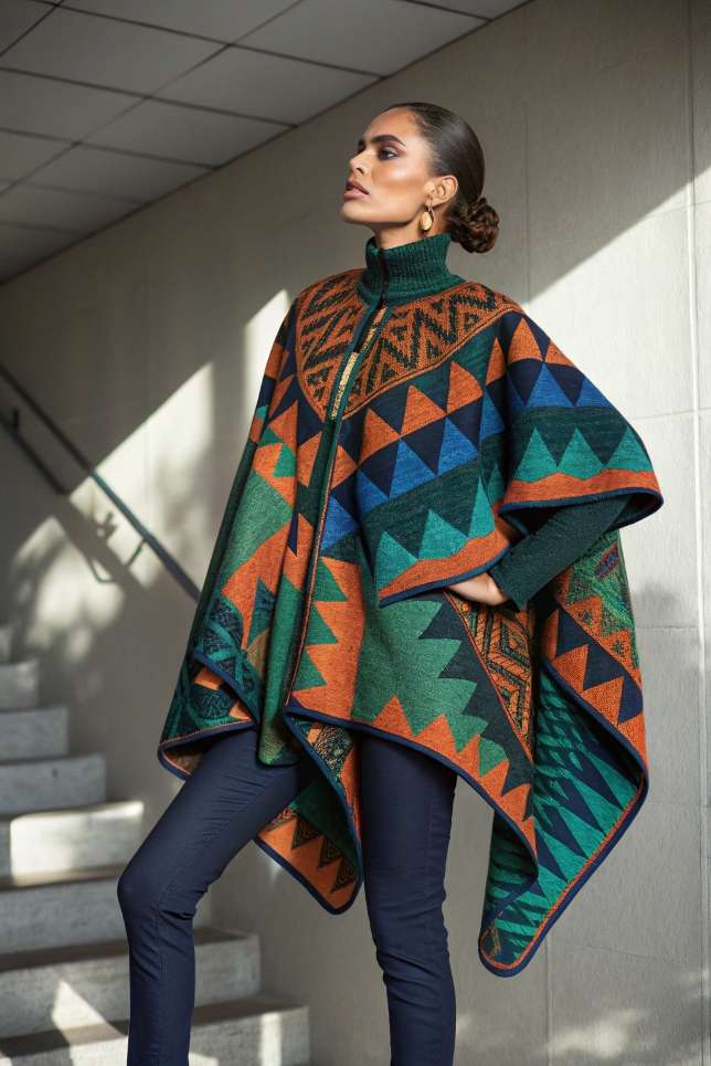 A poncho with skinny pants is a cozy yet statement outfit. The poncho adds volume and flair while the fitted pants balance the silhouette. It is a stylish fall combination.