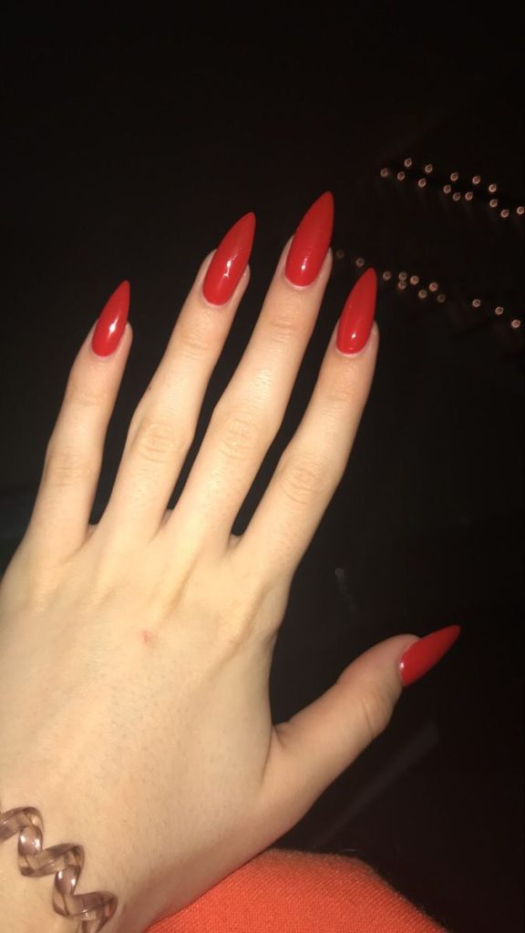 Stiletto red nails are bold and dramatic in the best way. The sharp shape makes a statement, and a true red shade always feels confident and put together.