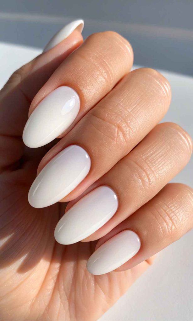 Oval milky nails are soft, simple, and really pretty up close. The milky white color looks clean and fresh, like a natural glow instead of a heavy color.