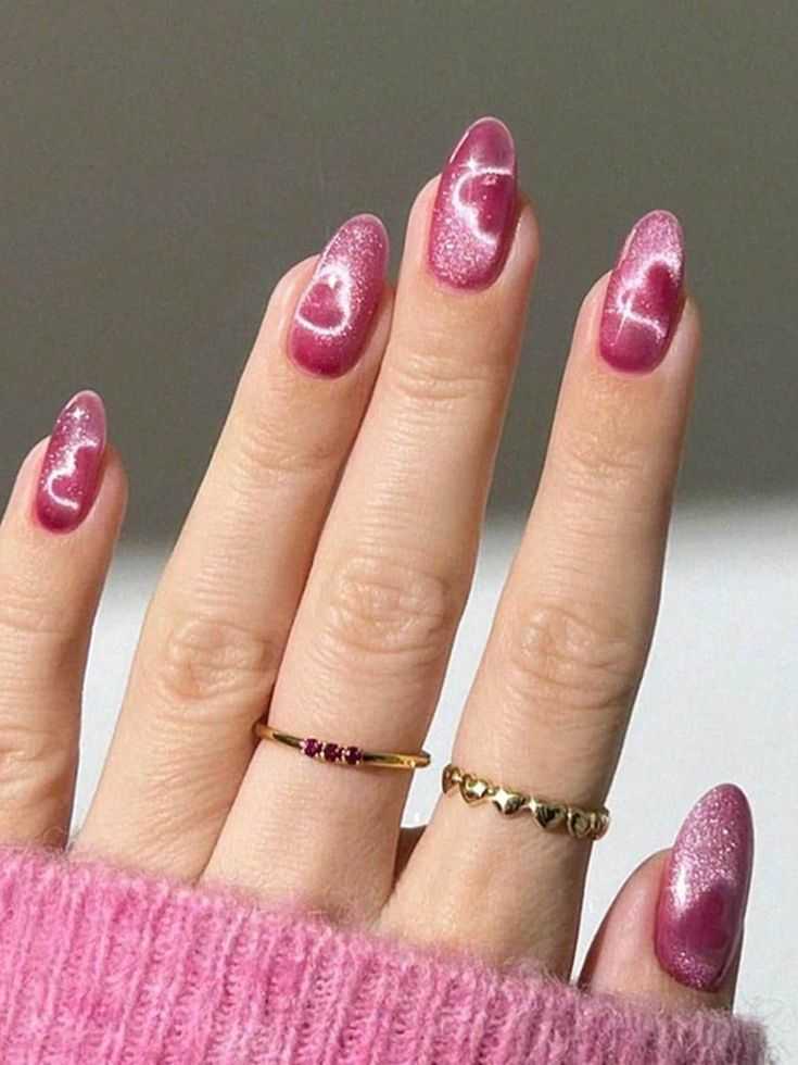 Cat eye almond nails have that glowing line that shifts in the light. It gives a magical, glossy look without needing extra gems or heavy designs.