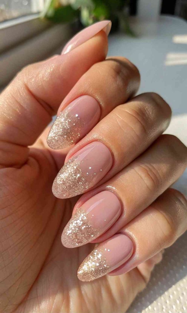 Aura almond nails look like a gentle glow right in the center of the nail. The colors fade softly, so the design feels dreamy and light, not busy.