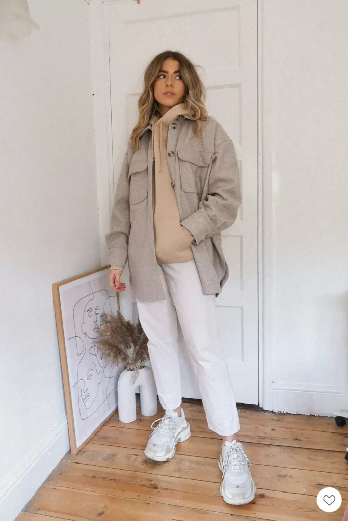 This outfit is perfect when you want to look relaxed but still feel put together. A hoodie under a shacket gives you a cool layered style that feels soft and easy. You can wear it when you’re going out for a short walk, picking up something from the store, or just stepping outside to grab your food.