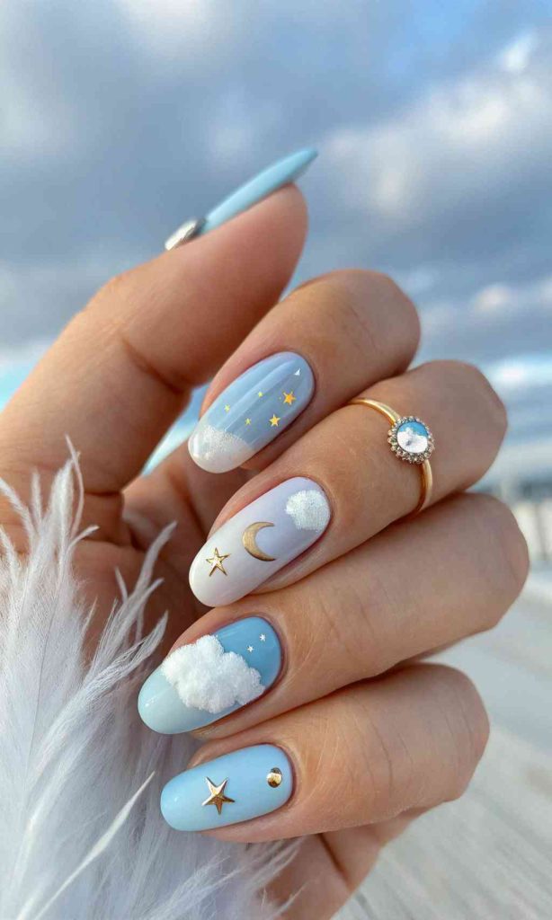 Air sign Libra nails feel light and clear, using sky‑inspired shades like pale blue or silver. The colors float softly together like a calm breeze. Every detail mirrors the open mind of this air sign. Libra nails in these tones look natural yet special and remind you to stay easy and kind.
