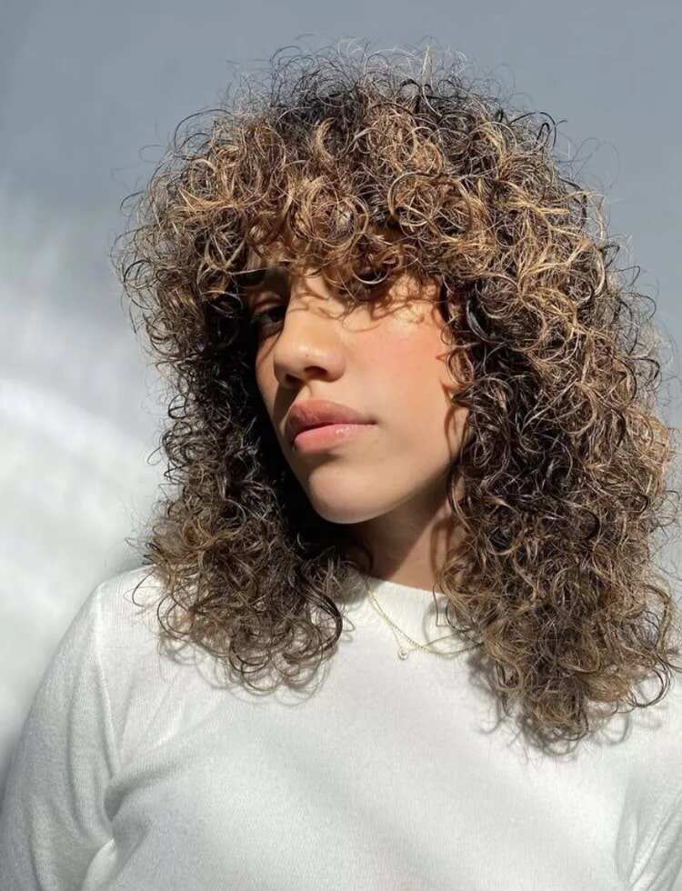 Sunkissed curly bangs bring brightness and charm to your hair. The curls frame your face softly, while the light tones give a warm summer glow. This style is perfect if you want to look lively and fresh in the hot season.