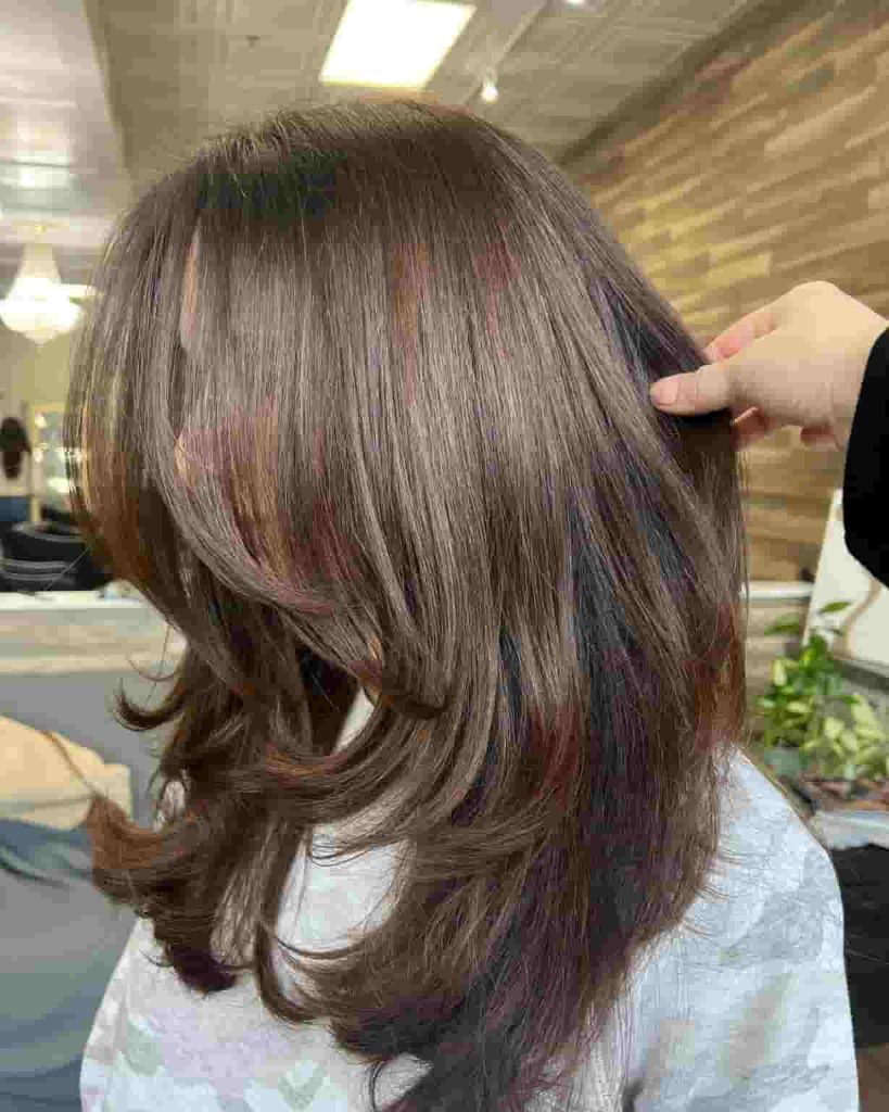 This style works best on straight or slightly wavy hair. The layers fall gently, giving your hair a polished and shiny finish.