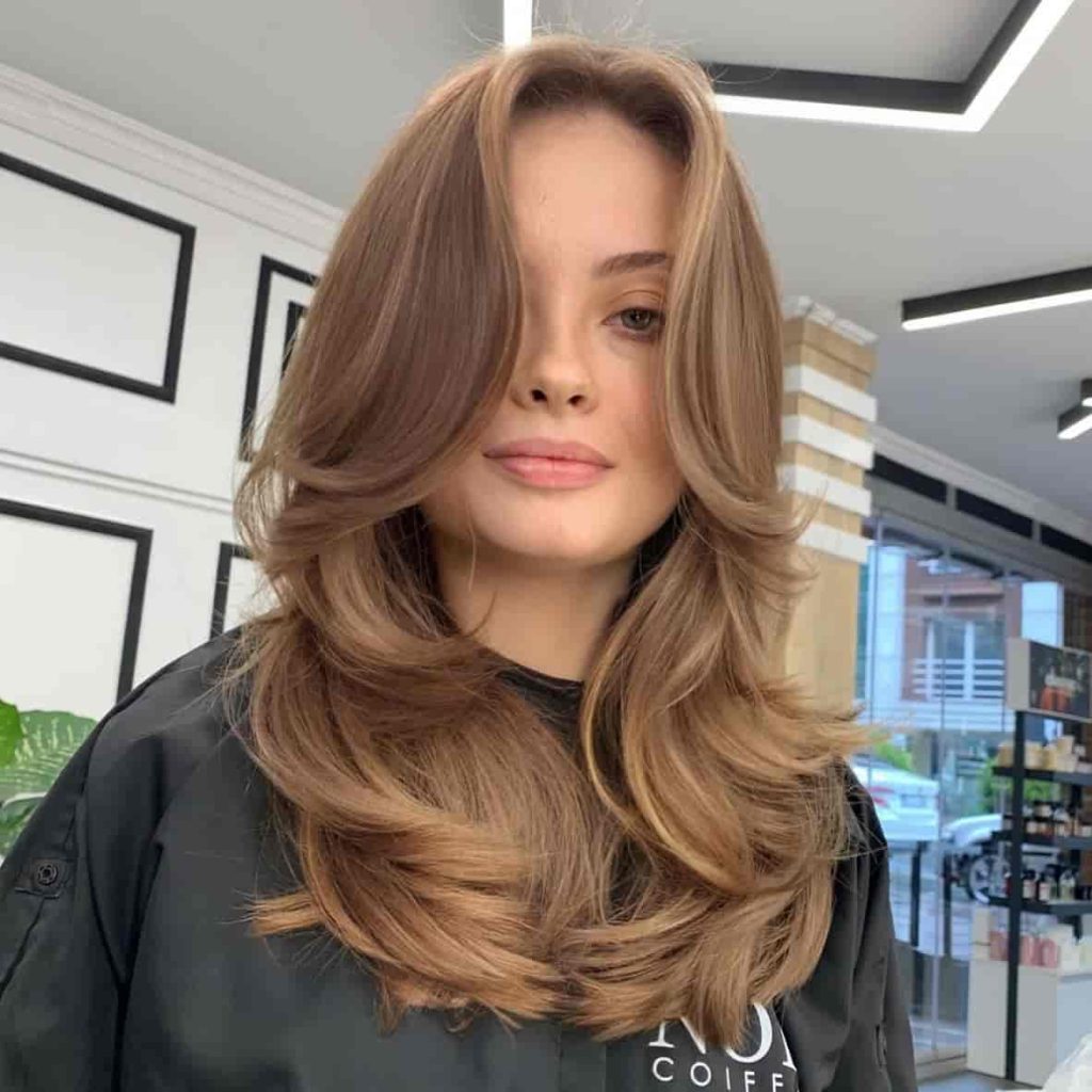 Curtain bangs with layers give your hair a soft and stylish touch. The bangs frame the face gently, while the layers add movement to the rest of the hair. It’s a fun and trendy look for the season.
