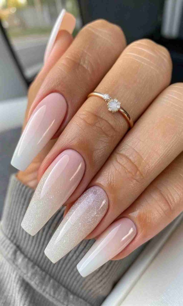 Glitter Noho Nails add a touch of sparkle while keeping everything elegant and soft. The glitter shines gently, not too loud but bright enough to make hands glimmer. The look is joyful, perfect for a celebration or just to lift your mood. The design feels light when you move your fingers, catching soft reflections of light. Noho Nails give this glitter design a calm glow that feels both festive and graceful.