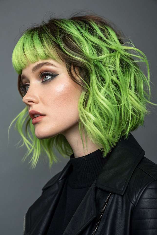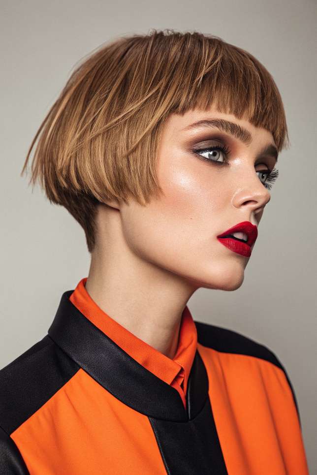 The Short Shaggy Bob with Choppy Bangs is bold and edgy. The choppy bangs give texture and a playful style. This Shaggy bob with bangs is perfect for someone who likes a modern, confident look.