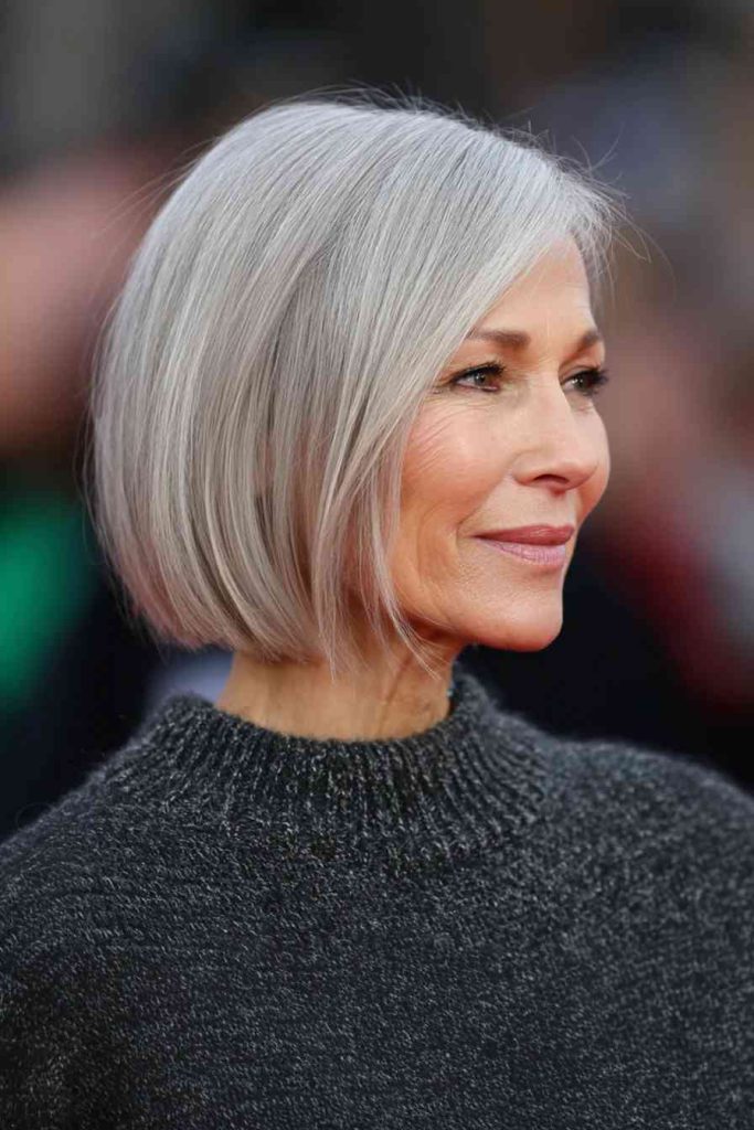 Soft silver feels graceful and modern. It can brighten the face and works especially well if you already have silver or gray hair.