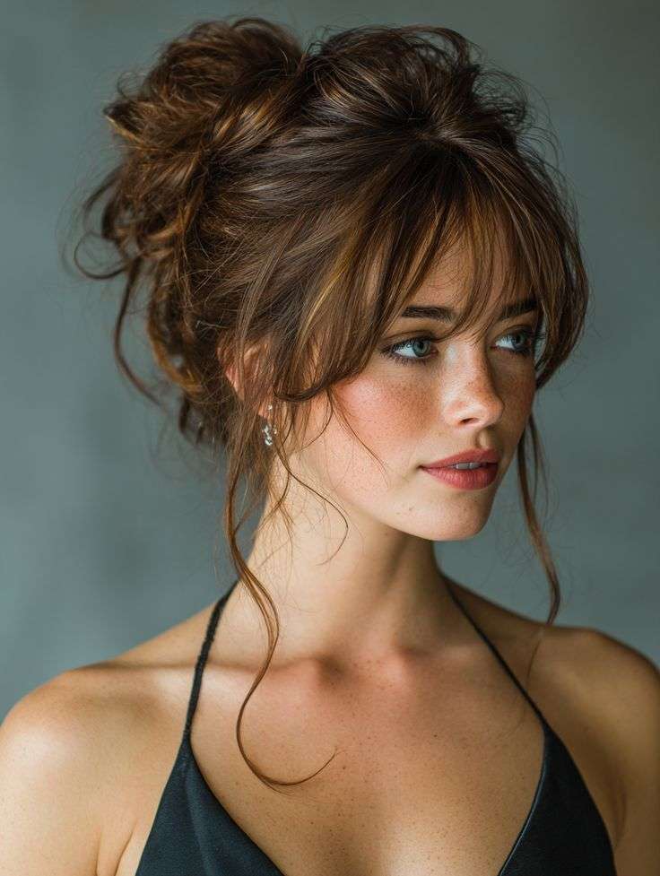 A soft wedding-guest updo is perfect when you want to look polished but still relaxed, and it belongs on any Spring Hairstyles Ideas list for events. I like a low chignon with a few loose pieces in the front, so it frames the face and feels romantic. Add a couple of simple pins or a small clip, and it looks finished without feeling heavy.