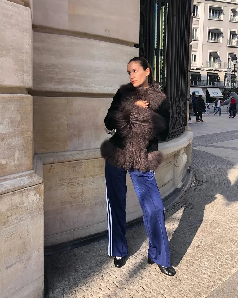 This outfit is great for days when you want to feel comfy but still look very stylish. The track pants are soft and easy to move in, which makes them perfect for traveling or walking a lot. A bright or special coat adds something bold and fun to your look. It helps you stay warm and makes the outfit look more put-together even if the rest is casual.