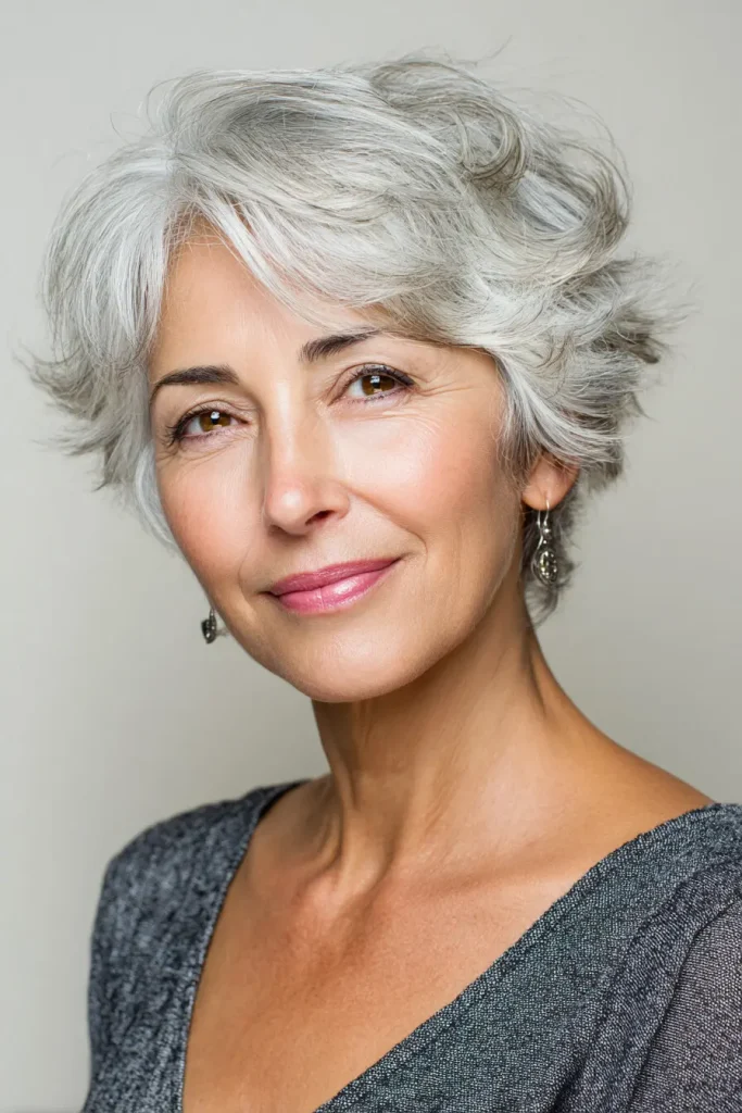 Short and layered styles are popular because they make hair easier to manage and often help it look fuller. As hair changes with age, it may become finer or thinner, so layers can add movement and softness. Short haircuts also reduce styling time, which many women enjoy.