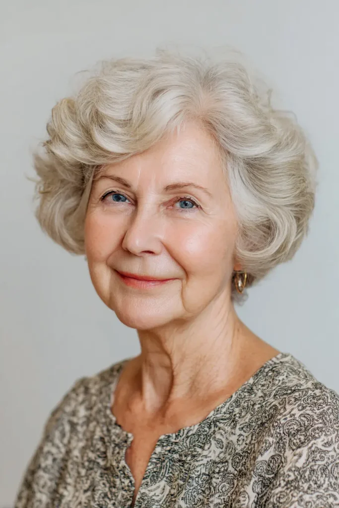 The bob shape keeps everything neat, while the added height gives it more life. It can be styled easily with a brush or a light product. Women Over 70 Haircuts often include this style for a fuller and brighter appearance.