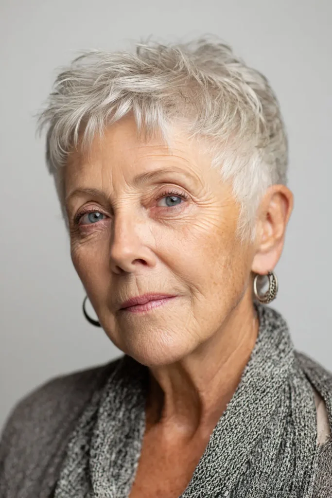 Many women choose this style because it saves time and still looks elegant. Soft layers in a pixie can make it feel modern instead of too sharp. It is one of the best Women Over 70 Haircuts for a clean and graceful look.